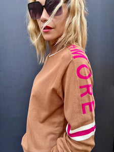 Tricot léger à col montant, orné de l’inscription AMORE le long des manches. Une pièce moderne et tendance qui ajoute une touche de style affirmée à vos looks du quotidien.