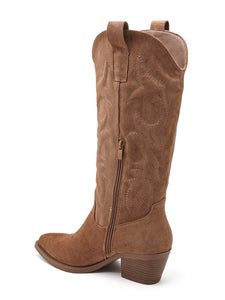 Botte au style western intemporel, avec une silhouette élancée et des détails travaillés qui apportent caractère et authenticité à ton look.