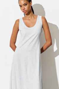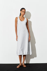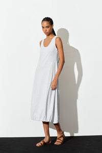 Robe longue sans manches avec encolure ronde et bretelles larges, ourlet ajustable grâce à un cordon. Coupe ample et confortable.