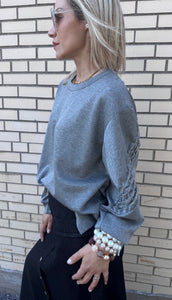 CHANDAIL AGRÉABLE AU TOUCHER, REHAUSSÉ DE FRISONS DORÉS QUI APPORTENT UNE TOUCHE D’ÉCLAT ET D’ORIGINALITÉ. PARFAIT POUR UN LOOK CHIC ET CONFORTABLE.