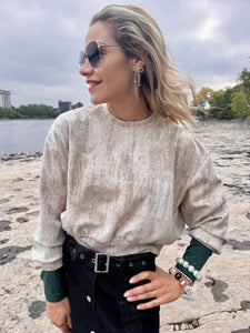 Chandail à motif marbré avec col rond et manches longues. Confortable et tendance, il apporte une touche moderne et originale à vos looks du quotidien.