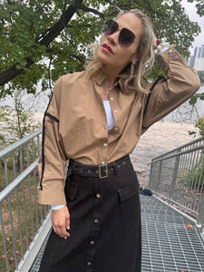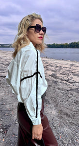 Chemise en coton avec insertion de lacets tressés. Un détail unique qui apporte une touche moderne et raffinée à cette pièce intemporelle.