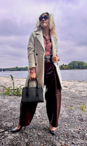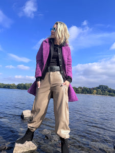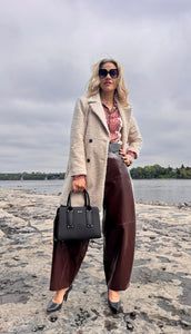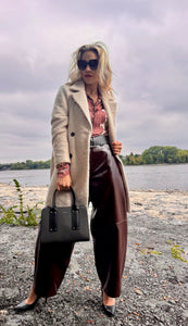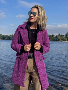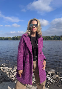 Manteau 3/4 en laine à boutonnage double-breasted, complété de fausses poches passepoilées avec rabat. Une pièce élégante et intemporelle, idéale pour la saison.