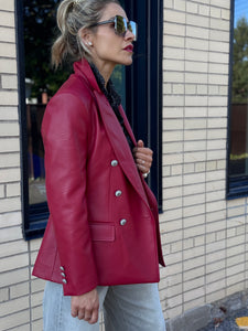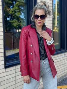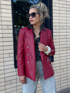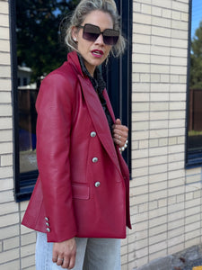 Un veston sophistiqué en cuir végan, à la coupe double-breast élégante. Les boutons ornés du logo apportent une touche distinctive et luxueuse. Une pièce moderne et audacieuse qui combine style et engagement responsable.